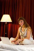 Zdjęcie "młoda kobieta korzysta z laptopa w hotelu" może być wykorzystywane do celów osobistych i komercyjnych zgodnie z warunkami zakupionej licencji Royalty-free. Obraz jest dostępny do pobrania w jakości wysokiej rozdzielczości do 5760x3840.