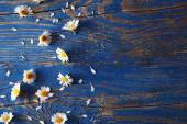 stare drewniane biurko i stokrotka kwiaty, streszczenie