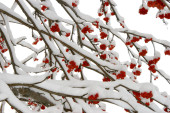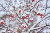 czerwone jagody pod śniegiem, Jarzębina, głóg