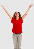 Szczęśliwa kobieta z podniesionymi