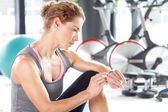 Słuchania muzyki kobieta po treningu fitness