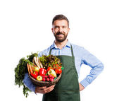 Młody przystojny ogrodnik