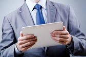 biznesmen, pracując na komputerze typu tablet