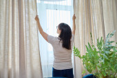 Zdjęcie "Kobieta wieszania jego białe zasłony w oknie" może być wykorzystywane do celów osobistych i komercyjnych zgodnie z warunkami zakupionej licencji Royalty-free. Obraz jest dostępny do pobrania w jakości wysokiej rozdzielczości do 5760x3840.