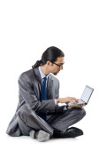 biznesmen siedzi przy biurku