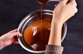 przygotowanie gorącej czekolady w garnku na drewnianym stole wychodzą Zdjęcia