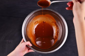 przygotowanie gorącej czekolady w garnku na drewnianym stole wychodzą Zdjęcia
