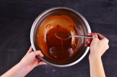przygotowanie gorącej czekolady w garnku na drewnianym stole wychodzą Zdjęcia