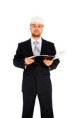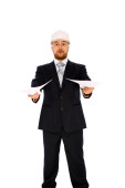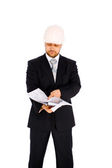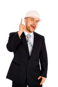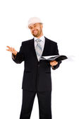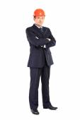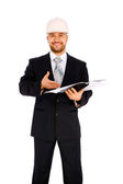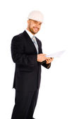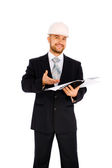 inżynier w kasku na białym tle