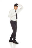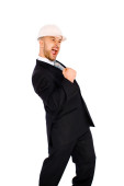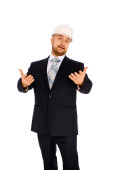 inżynier w kasku na białym tle