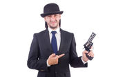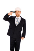 inżynier z pistoletu na białym tle