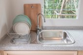 Częścią nowoczesnego zlewozmywaka z szuflady i uchwyty