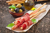 Zdjęcie "Grissini trzymać chleb z szynką na czarny deska" może być wykorzystywane do celów osobistych i komercyjnych zgodnie z warunkami zakupionej licencji Royalty-free. Obraz jest dostępny do pobrania w jakości wysokiej rozdzielczości do 5760x3840.