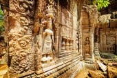 Płaskorzeźba w starożytnej świątyni Ta Prohm w Angkor w Kambodży