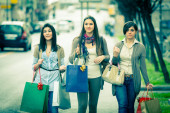 trzy piękne młode kobiety robią zakupy