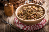Tradycyjne polskie kiszonej kapusty (bigos) z pieczarkami i mięsem.