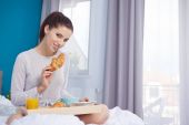 Kobieta jedząca świeżą sałatkę