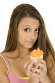 portret śmieszne dziewczynka ekspresyjny jedzenie lodów na białym tle