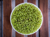 Zdjęcie "Uprawy rzeżuchy w małej miseczki widok z góry." może być wykorzystywane do celów osobistych i komercyjnych zgodnie z warunkami zakupionej licencji Royalty-free. Obraz jest dostępny do pobrania w jakości wysokiej rozdzielczości do 5760x3840.