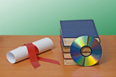 przewijania z czerwoną wstążką i książek