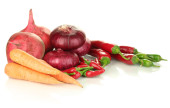 świeże warzywa w drewnianym pudełku izolowane na białym