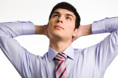 biznesmen myślenia, biały