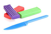 Plastelina kolor idealna plastikowy nóż na białym tle