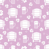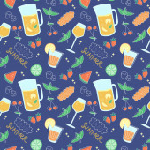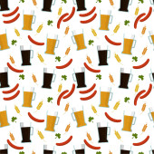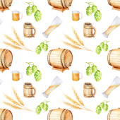 Seamless pattern with watercolor beer with hops, wheat, pretzel.