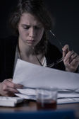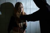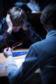 Zaniepokojony Mężczyzna podejrzany podczas wysłuchanie