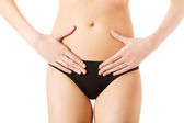 Kobieta dotykając jej szczupły brzuch.