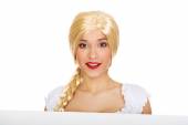 Zdjęcie "Kobieta ubrana bawarski strój trzymając pusty transparent." może być wykorzystywane do celów osobistych i komercyjnych zgodnie z warunkami zakupionej licencji Royalty-free. Obraz jest dostępny do pobrania w jakości wysokiej rozdzielczości do 5760x3840.