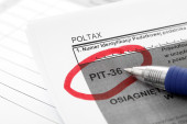 formularz podatkowy z kalkulatora, pieniądze i pióra