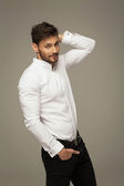 Zdjęcie "Młody przystojny modelu pozowanie" może być wykorzystywane do celów osobistych i komercyjnych zgodnie z warunkami zakupionej licencji Royalty-free. Obraz jest dostępny do pobrania w jakości wysokiej rozdzielczości do 5760x3840.