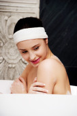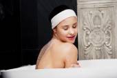 kobieta kąpieli relaksujących kąpieli.