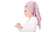 Kobieta w szlafrok i krem nawilżający.
