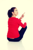 Zdjęcie "Kobieta siedząca krzyż legged z otwartej dłoni." może być wykorzystywane do celów osobistych i komercyjnych zgodnie z warunkami zakupionej licencji Royalty-free. Obraz jest dostępny do pobrania w jakości wysokiej rozdzielczości do 5760x3840.