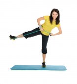 atrakcyjna młoda kobieta z fitness ekspander rozciągające