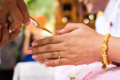 Tradycyjnej hinduskiej ceremonii religijnych modląc się