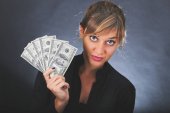 kobieta z Polski złoty pieniądze na ciemnoszarym tle