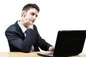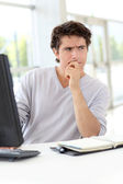 młody mężczyzna siedzący przed laptopem w urzędzie