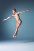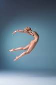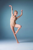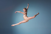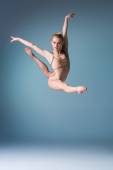 młody piękny nowoczesny styl tancerz skoki na tle studio