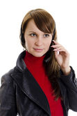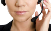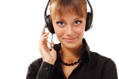 operator kobieta wsparcie z mikrofonem. na białym tle.
