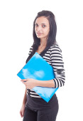 atrakcyjny sekretarz z folderu dokumenty. na białym tle.