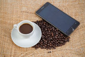 Zdjęcie "Kawa z fasoli i inteligentny telefon" może być wykorzystywane do celów osobistych i komercyjnych zgodnie z warunkami zakupionej licencji Royalty-free. Obraz jest dostępny do pobrania w jakości wysokiej rozdzielczości do 5760x3840.