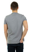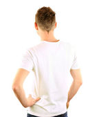 Yong biznes człowiek z tyłu, na białym tle