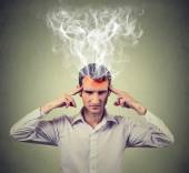 Angry młody człowiek, dmuchanie wydobywającą się z uszu