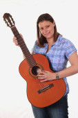 Cowgirl w kapelusz z gitarą akustyczną
