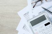 formularz podatkowy, czerwony długopis i kalkulator