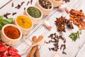 Zdjęcie "Różnorodność przypraw i ziół śródziemnomorskich. " może być wykorzystywane do celów osobistych i komercyjnych zgodnie z warunkami zakupionej licencji Royalty-free. Obraz jest dostępny do pobrania w jakości wysokiej rozdzielczości do 5760x3840.