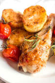 Zdjęcie "Kurczak z warzywami serwowane na okrągły deska do krojenia na spalony " może być wykorzystywane do celów osobistych i komercyjnych zgodnie z warunkami zakupionej licencji Royalty-free. Obraz jest dostępny do pobrania w jakości wysokiej rozdzielczości do 5760x3840.